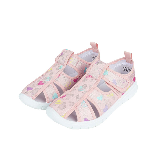 Сандалии Pasito на липучке принт разноцветные сердечки нежно-розовые