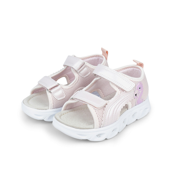 Сандалии Pasito на липучке с аппликацией фламинго и подошва с огоньками розовые