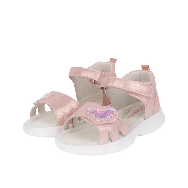 Сандалии Pasito на липучке с аппликацией сердечка перламутрово-розовые