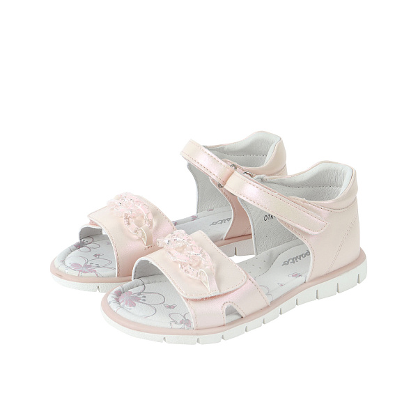 Удобные и стильные сандалеты для девочек дошкольного возраста. Модель в розовом цвете и красивым перламутровым блеском. Затягивается на две липучки. У обуви открытый мысок, украшенный прозрачной декоративной цепочкой, и закрытая пятка. Она помогает поддерживать пятку в правильном положении и равномерно распределяет нагрузку на свод стопы. Носить можно теплую погоду и как сменную обувь в теплое время года.