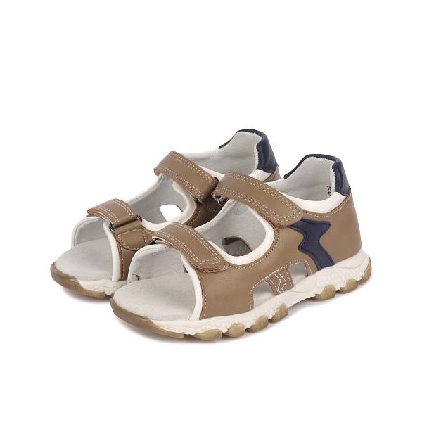 Открытые туфли предназначены для маленького мальчика, способны обеспечить все базовые потребности ребенка. Модель с высоким задником гарантирует естественное положение стопы. Пара ремешков с липучками позволяют быстро переобуться. При необходимости с помощью застежек несложно скорректировать посадку обуви на ноге.