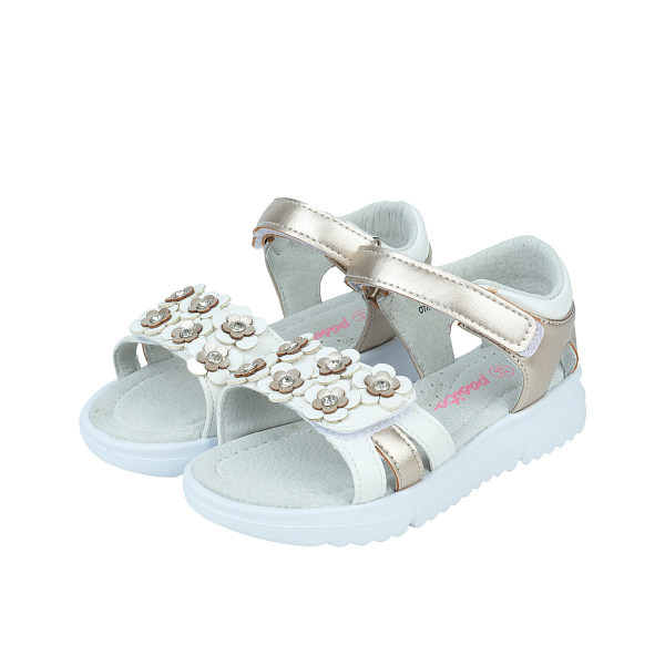 Изящные сандалеты с миниатюрными цветочками подчеркнут нежный образ маленькой девочки, обеспечат комфорт во время прогулки в жаркий день. Модель с открытым носом и дополнительными прорезями для вентиляции снабжена парой ремешков с липучками. С помощью застежек несложно переобуть ребенка, скорректировать полноту обуви. Высокий задник с мягким краем не оказывает давления на пятку, обеспечивает все условия для правильной постановки стопы.