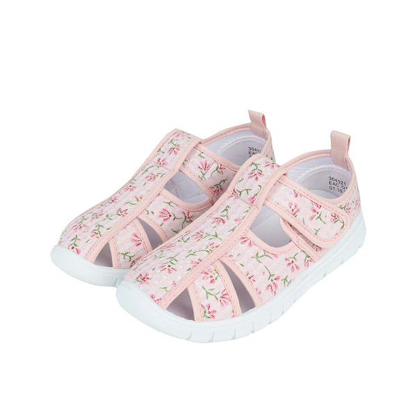 Эта модель имеет текстильный верх – наиболее предпочтительный выбор для детей младшей возрастной категории. Стельки и подкладка изготовлены из гигиеничного хлопка, который не натирает ноги. Носки и задник закрытые, фиксация на ноге осуществляется матерчатой планкой с липучкой. Подошва сделана из ПВХ с рифлением, которое защищает от скольжения.