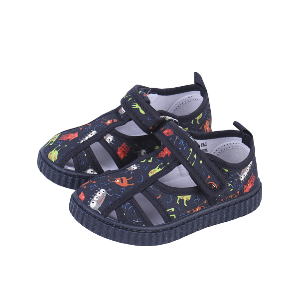 Сандалии Pasito на липучке закрытые с веселым принтом синие