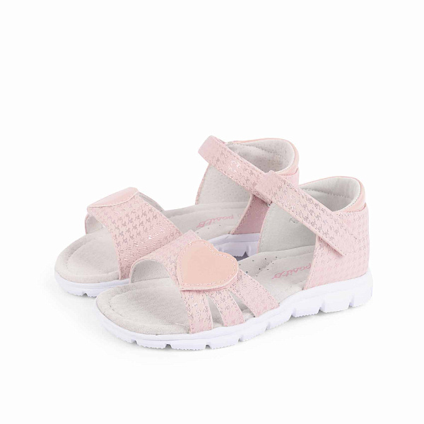 Легкие сандалеты позволят девочке дошкольного возраста отправиться на прогулку в летний день с максимальным комфортом. Модель привлекает внимание нежной цветовой гаммой и изящным сердечком, закрепленным в передней части. Ремешок с липучкой позволит ребенку переобуться самостоятельно. Он надежно фиксирует обувь, регулирует полноту. В меру жесткий задник гарантирует ровную постановку стопы, не давит на пятку.