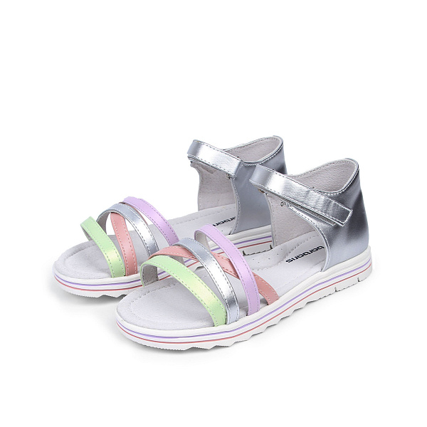 Нарядные сандалии из переплетающихся ремешков пастельных цветов понравятся девочкам школьного возраста. Преобладающий цвет модели – серебристый, он позволяет сочетать туфли с нарядами в повседневном или классическом стиле, а также с одеждой ярких цветов. Такие сандалии чудесно вентилируют стопу о время ходьбы и дарят чувство комфорта в течение дня. Внутренняя поверхность ремешков и стелька изготовлены из кожи, поэтому сандалии подходят для ежедневного многочасового использования. А прочная застежка-липучка делает удобным самостоятельное обувание, а также плотно фиксирует обувь на ноге. Стелька оборудована специальной подушкой для комфортной ходьбы.