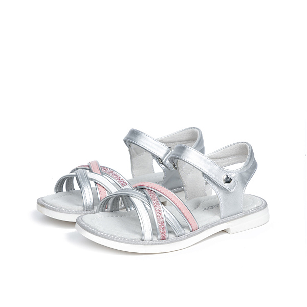 Летние сандалии, изготовленные из кожи в нежной серебристо-розовой цветовой гамме, придутся по вкусу модницам дошкольного возраста. Модель имеет плотную полимерную подошву с фактурным рисунком протектора, которая слегка приподнята на каблучок, а небольшой супинатор обеспечит правильное положение стоп и распределит нагрузку при ходьбе.