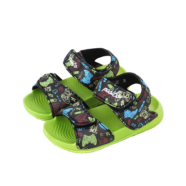 Сандалии Pasito пляжные принт игровой мир с яркой подошвой черные