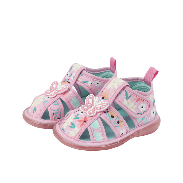 Сандалии Pasito принт цветочный сад с наклейкой бабочка подошва с огоньками розовые