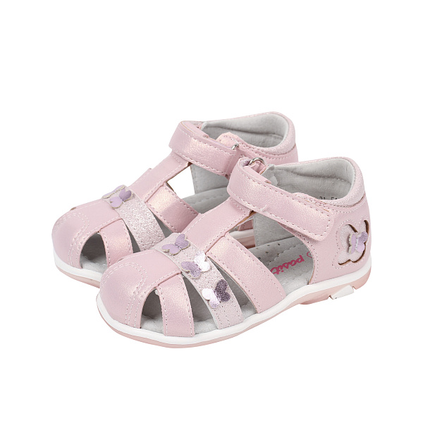 Легкие сандалии розового цвета украшены миниатюрными бабочками. Такой дизайн вызовет радость у каждой маленькой девочки. Модель имеет упругую подошву из ТПР, закрытый нос и много прорезей для вентиляции. Простая застежка в виде липучки надежно фиксирует обувь на ноге, позволяет корректировать полноту. Искусственный верх дополнен подкладкой и стелькой из натуральной кожи. Материалы устойчивы к истиранию и износу, не препятствуют естественной воздуха, не впитывают грязь. Изделие несложно отмыть от пыли. Оно долгое время сохраняет привлекательность и аккуратность при бережном обращении.
