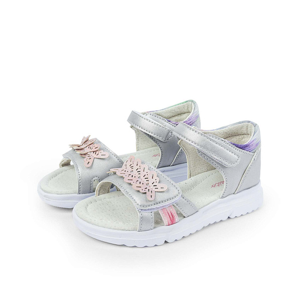 Нарядные сандалеты понравятся любой девочке, обеспечат комфорт и хорошее настроение на прогулке. Модель привлекает внимание нестандартным сочетанием цветов. Украшением служат изящные бабочки. Крепкий задник не оказывает давления на пятку, обеспечивает правильную постановку стопы. Открытый нос и дополнительные прорези улучшают вентиляцию. Ремешки с липучками позволяют скорректировать полноту, гарантируют надежную фиксацию обуви.
