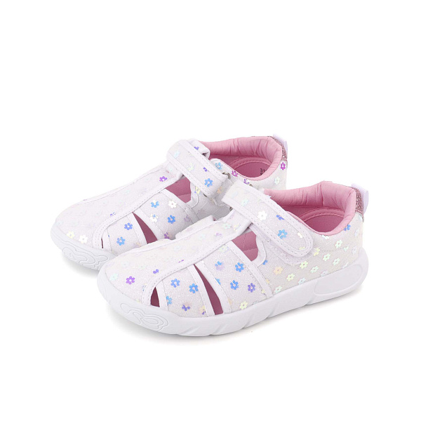 Особенность модели — закрытый носок и пятка, которые защищают детские ноги от травм и ушибов, что особенно актуально для активных малышей. Нежный белый цвет с милыми цветочками придает сандалиям очаровательный вид, делая их отличным вариантом для повседневной носки и праздничных мероприятий.