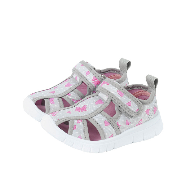 Сандалии Pasito с принтом бантики и сердечки серые