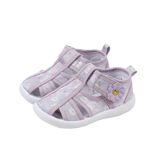 Сандалии Pasito с принтом зайчика и декоративным цветочком фиолетовые