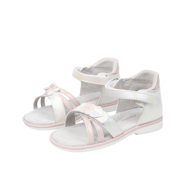 Легкие летние сандалеты для самой маленькой принцессы ясельного возраста. В них малышка сможет играть на открытом воздухе, ходить в детский сад или на прогулки с родителями. Модель пошита из мягкой натуральной кожи, поэтому не натирает нежную кожу ребенка и не вызывает аллергических реакций. Она застегивается на липучку, поэтому малышка сможет обуваться самостоятельно. Несъемная стелька дополнена супинатором, чтобы нога девочки развивалась правильно без плоскостопия. Жесткий задник фиксирует голеностопный сустав, поэтому во время бега ступня не выскакивает со своего места. Цвет изделия: белый с пудровыми вставками.