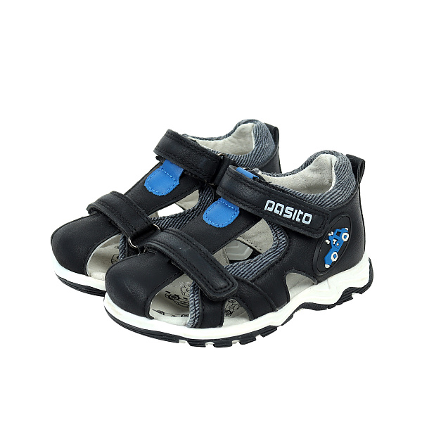 Удобные сандалии Pasito в практичном черном цвете предназначены для мальчика ясельного возраста. Модель украшена элементами контрастного цвета, имеет широкий язычок и пару ремешков с липучками. Такая застежка проста в применении, ускоряет и упрощает процесс переобувания. Верх из искусственной кожи несложно очистить от загрязнений. Для изготовления подкладки и стельки использована натуральная кожа. Она прекрасно пропускает воздух, сохраняет тепло, обладает необходимой степенью гигроскопичности. Подошва из термопластичной резины (ТПР) препятствует скольжению.