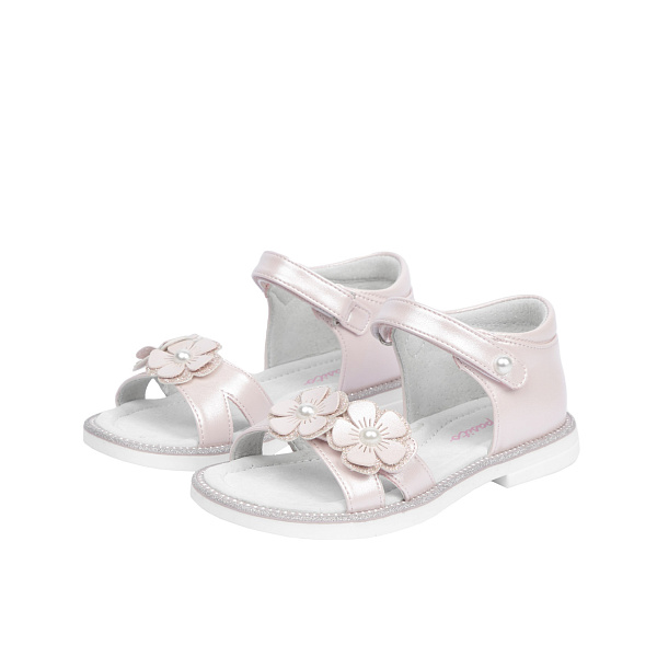 Нарядные туфли привлекают внимание нежным оттенком розового, изящными цветами и жемчужным декором. Модель отвечает всем потребностям модницы дошкольного возраста. Она имеет высокий фиксирующий задник с мягким краем, гарантирующий правильную постановку стопы.