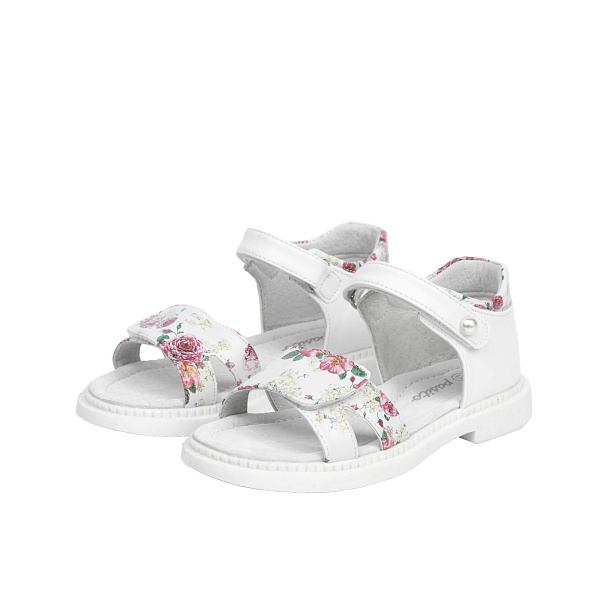 Модель предназначена для девочки дошкольного возраста, привлекает внимание цветочным узором на белом фоне. При создании туфель учтены все потребности ребенка. Высокий усиленный задник с мягким краем гарантирует правильную постановку стопы. Ремешки с липучками позволяют отрегулировать обувь под полноту стоп, упрощают процедуру переобувания.