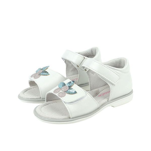 Нарядные белые сандалии выглядят весьма аккуратно. Легкая обувь украшена ягодками и листочками в передней части, имеет простую и надежную застежку в виде липучки. С ее помощью несложно отрегулировать полноту. Для правильной постановки стопы предназначен закрытый задник, его мягкий верхний край исключает натирание и дискомфорт. В меру упругая подошва из ТПР не скользит на дорогах, устойчива к износу и истиранию. Подкладка и стелька изготовлены из натуральной кожи. Верх из искусственной кожи не препятствует естественной вентиляции, легко отчищается от пыли и загрязнений. Стелька и подкладка изготовлены из натуральной кожи.