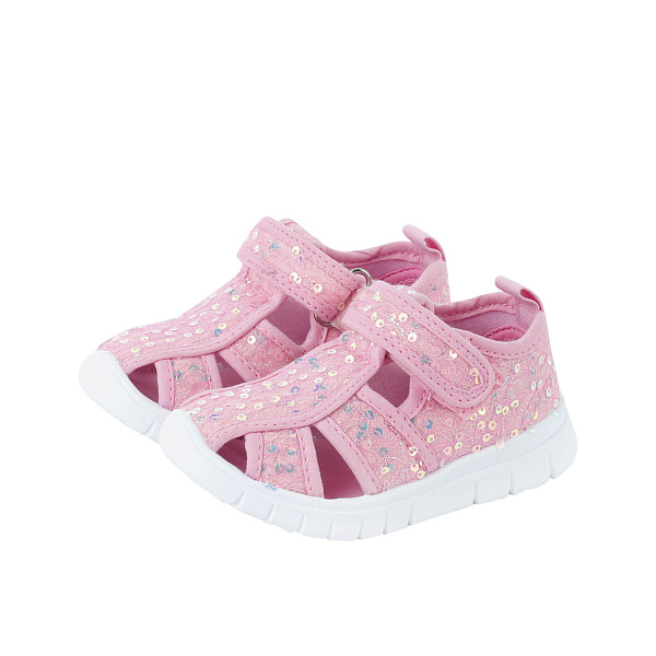 Эти яркие летние сандалеты для девочек созданы специально для любительниц всего розового и блестящего. Модель в нежном розовом оттенке расшита переливающимися на солнце пайетками. Застегивается на липучку, поэтому ребенок сам сможет попробовать их надеть и снять. Закрытый увеличенный задник, эргономичная стелька и уплотненная пятка способствуют правильному формированию стопы ребенка. Спереди у сандалет есть отверстия, пропускающие воздух и дающие ноге дышать. Малышке в них будет комфортно даже в жаркую погоду.