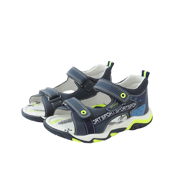 Открытые туфли позволят мальчику дошкольного возраста отправится на летнюю прогулку с максимальным комфортом. Модель создана с учетом базовых потребностей ребенка, оформлена в актуальной цветовой гамме. Украшением служат контрастные швы, заклепки и графический рисунок на боковой части. Правильную постановку стопы гарантирует жесткий задник. Две застежки липучки упрощают процесс переобувания, позволяют отрегулировать полноту.