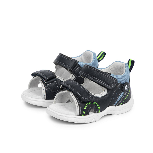 Усиленный высокий задник с мягким краем гарантирует правильную постановку стопы. Два ремешка с липучками обеспечивают регулировку полноты, упрощают процесс переобувания.