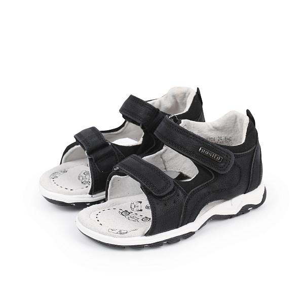 Модные и удобные сандалии станут полезным приобретением для маленького мальчика. Модель имеет высокий закрытый задник, он не натирает и не давит на пятку. Две липучки позволяют надежно зафиксировать обувь, скорректировав ее полноту. Подошва из ТПР устойчива к износу, чудесно отмывается, не скользит на любом покрытии. Искусственный верх дополнен стелькой и подкладкой из натуральной кожи. Такое решение обеспечивает длительный период применения изделия, необходимую естественную циркуляцию воздуха.