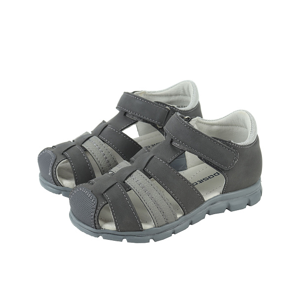 Легкие кожаные сандалии предназначены для ребенка дошкольного возраста. Комфортная обувь полузакрытого типа имеет стильный двухцветный дизайн в оттенках серого. Поверхность сандалий из искусственной кожи устойчива к образованию царапин и потертостей. Пальцы надежно защищены носком, усиленным дополнительной вставкой. Задник и носок закрытые, они не позволят стопам смещаться во время ходьбы. По бокам имеются небольшие прорези. Подкладка и стелька из натуральной кожи мягкие и эластичные, приятно прилегают к коже и дарят комфорт в носке.