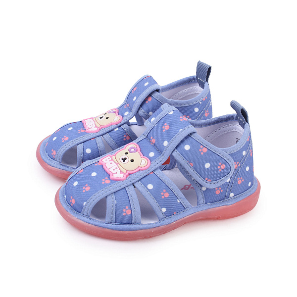 Сандалии Pasito со светящейся подошвой принт лапки с декоративным мишкой голубые
