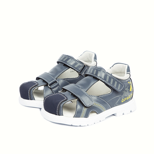 Сандалеты предназначены для мальчика ясельного возраста. Модель с усиленным носом и пяткой обеспечит комфортное передвижение во время прогулки малыша.