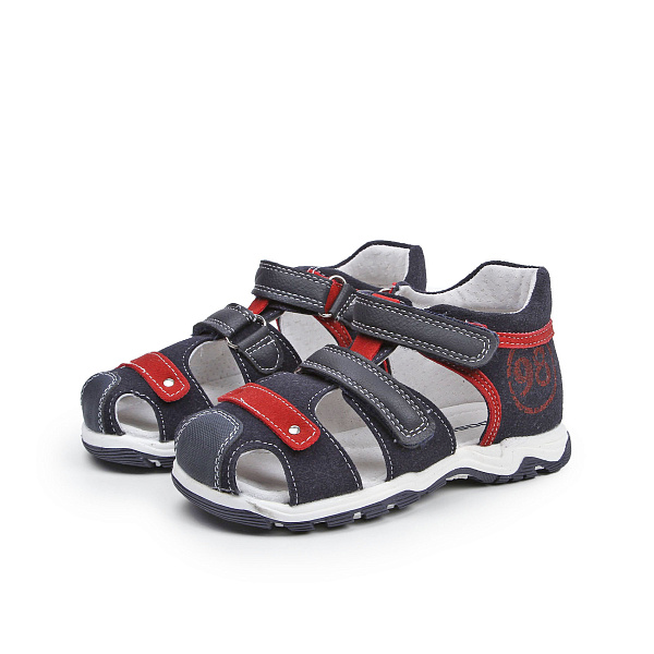 Комфортные и легкие сандалии для мальчиков ясельного возраста снабжены застежками-липучками, которые регулируют обувь по полноте и фиксируют на ноге, обеспечивая легкость надевания. Верх сандалет, стелька и подкладка состоят из кожи. Такая обувь подходит как для жаркой летней погоды, так и для ежедневного использования в закрытом помещении, кожа обеспечит высокое гигиеническое состояние стопы и подарит комфорт до конца дня. Комбинированная черно-белая подошва из полимерного материала имеет рельефный противоскользящий рисунок, обеспечивающий устойчивость на поверхности любого типа. Стелька снабжена специальной подушечкой, задник имеет жесткую вставку для правильного формирования стопы.