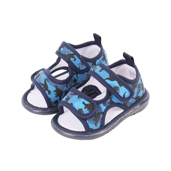 Сандалии Pasito ясельные на липучках с принтом динозаврики синие