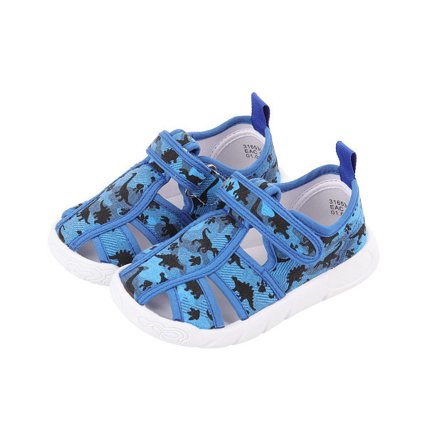 Сандалии Pasito ясельные на липучке с принтом динозаврики синие