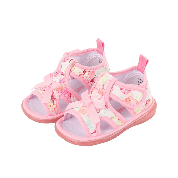 Сандалии Pasito ясельные с принтом бабочка подошва с огоньками розовые