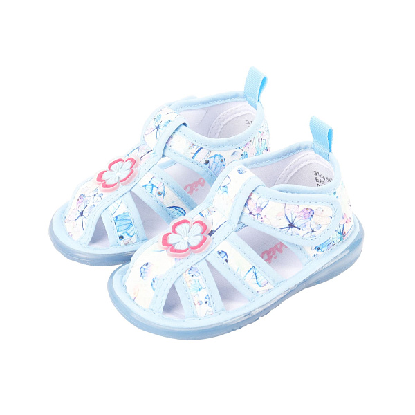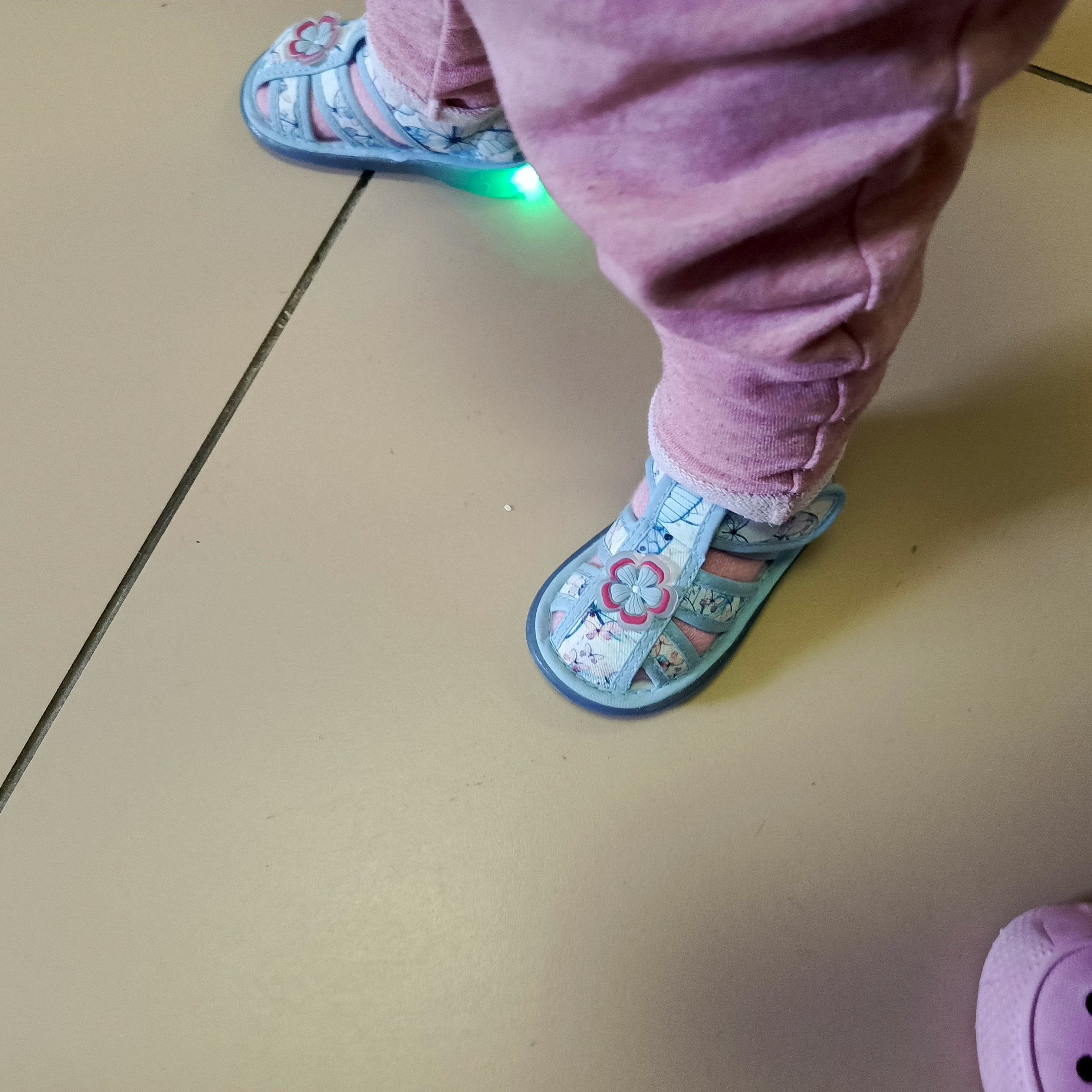 Милые голубые сандалии цветочными мотивами станут отличным дополнением летнего гардероба малышки. Девочку порадует необычный эффект — светящаяся подошва, которая не только сделает прогулку веселее, но и повысит безопасность ребенка в темное время суток. Закрытый задник фиксирует ногу в правильном положении и защищает ребенка от травм во время игр или бега. Застежка-липучка помогает без лишних усилий надеть и снять обувь.