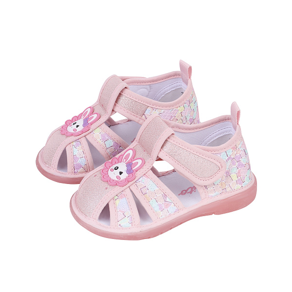 Сандалии Pasito закрытые на липучке с нашивкой зайчик подошва с огоньками розовые