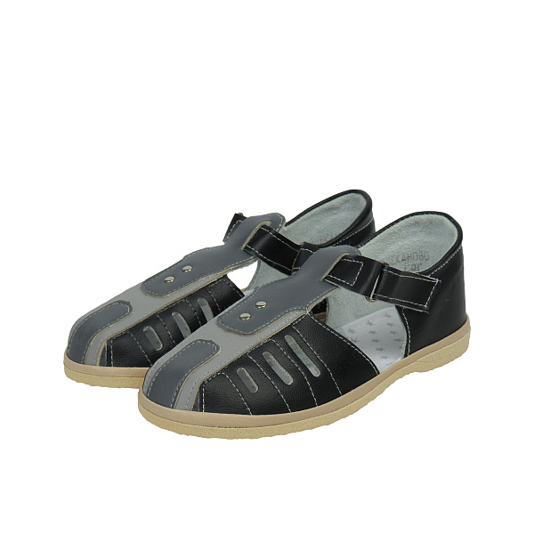 Облегченные черные сандалии станут чудесным дополнением в повседневном гардеробе ребенка. модель с прорезями по бокам вентилирует стопы, позволяя им дышать. Верх обуви пошит из искусственной кожи, материал не склонен к появлению царапин и приятный на ощупь. Подкладка и стелька из натуральной кожи подарит стопам комфорт в процессе носки – материал хорошо пропускает воздух и впитывает влагу, позволяя ногам дышать. Подошва изготовлена из НПШ (микропористая резина), она не утяжеляет ботинок и препятствует скольжению. Застежка-липучка регулируется по длине, она плотно фиксирует обувь на ноге и облегчает переобувание.