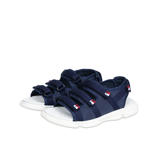 Летние открытые сандалии из темно-синего денима, декорированного тесьмой подойдут для мальчиков школьного возраста. Туфли можно регулировать по ширине и длине с помощью четырех застежек-липучек. Подошва с фактурным рисунком делает обувь устойчивой на скользкой или влажной поверхности