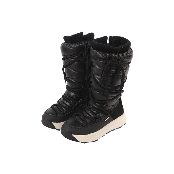 Утепленные сапоги-сноубутсы для девочек школьного возраста – стильное и практичное решение для зимних прогулок и активных игр на свежем воздухе. Черные ботинки с контрастной белой подошвой и оригинальной шнуровкой придают образу модный акцент и хорошо сочетаются с любой зимней одеждой. Верхняя часть сделана из текстиля и искусственной кожи, что обеспечивает долговечность и защиту от внешних факторов.