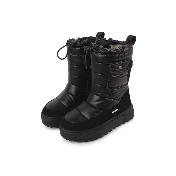 Утеплённые сапоги (сноубутсы) для девочек – идеальный выбор для зимних прогулок и активных игр на свежем воздухе. Сапоги выполнены в стильном черном цвете и дополнены мягкими вставками. Верх обуви изготовлен из водонепроницаемого материала, что позволяет носить сапоги даже в самые сырые и снежные дни, не беспокоясь о том, что ноги промокнут.