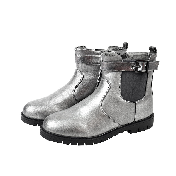 Стильные укороченные сапоги Barbaris порадуют любую школьницу. Демисезонные сапожки в точности повторяет взрослую модель, отлично сочетается с брюками и юбками. Серебристый цвет придает ей особенно изысканный вид. Застежка-молния дополнена ремешком с пряжкой, позволяющим регулировать полноту. У сапог утолщенная подошва из термопластичной резины (ТПР), материал не скользит на дорогах и равномерно распределяет нагрузку. Верх из искусственной кожи с текстильными вставками не требует сложного ухода. В составе стельки и подкладки содержится 80% хлопка. Материал устойчив к износу, хорошо сохраняет тепло.