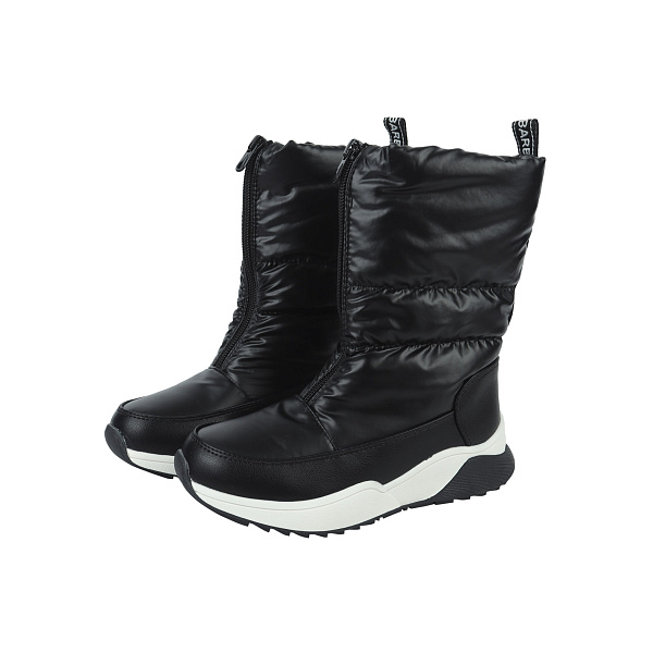 Утепленные зимние сноубутсы согреют ноги ребенка в морозы. Сапоги удлиженные, верх изготовлен из текстиля и кожи. Сочетание материалов не склонны в царапинам, бережно сохраняют тепло и хорошо пропускают воздух. Подкладка и стелька изготовлены из натуральной шерсти, благодаря чему ногам будет тепло и сухо в холодную погоду. Подошва, выполненная из ТПР препятствует скольжению, устойчива к низким температурам и равномерно распределяет нагрузку на ноги за счет упругости. Застегиваются сапоги на застежку-молнию спереди. Сочетание черного и белого цветов делает обувь универсальной и подходящей под верх любых цветов. Рекомендовано для детей школьного возраста.