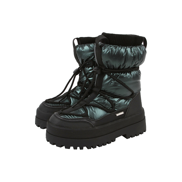 Голенище выполнено из специальной ткани, не пропускающей воду. Внутри сапожки утеплены меховой стелькой и боками, которые хорошо держат тепло. На ноге обувь удерживается комбинацией застежки «молния» и шнуровки. Такое крепление дополнительно усиливает защиту от проникновения влаги, снега и холодного воздуха.
