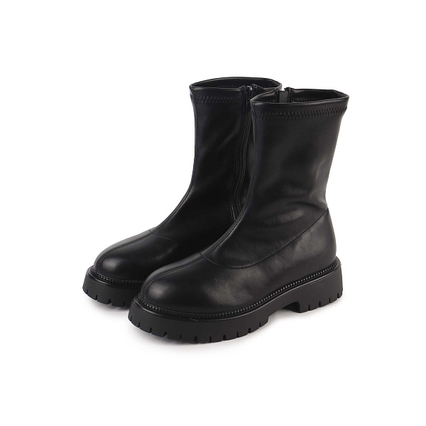 Верх ботинок изготовлен из искусственной кожи, которая отличается своей прочностью и устойчивостью к износу. Модель оснащена удобной молнией в тон сапогам. Подкладка и стелька выполнены из прочного текстиля, что обеспечивает дополнительный комфорт и вентиляцию стопы.