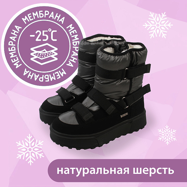 Утепленные дутики для девочки подходят для холодных школьных дней, когда важно сохранить тепло и комфорт. Легкие и удобные, они не доставят неудобств во время занятий и активных перемен на улице. Черный цвет делает их универсальными и легко сочетаемыми с любыми нарядами для школы.