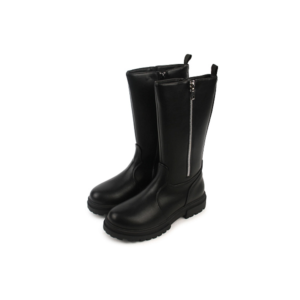 Стильные и теплые ботинки — идеальный выбор для самых модных девчонок. Модель из черной искусственной кожи выглядит строго и эффектно, подчеркивая индивидуальность и смелость образа. Высокий удобный верх с застежкой-молнией сбоку — быстро и легко надеть, а также обеспечивает надежную фиксацию и дополнительный комфорт при носке.