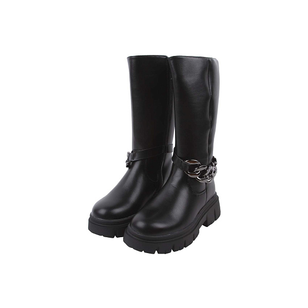 Сапоги Barbaris высокие с рифленой подошвой и декоративной цепочкой черные