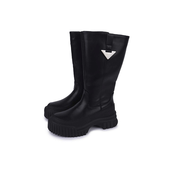 Сапоги демисезонные Barbaris с рельефной подошвой и лаконичным декоративным элементом черные