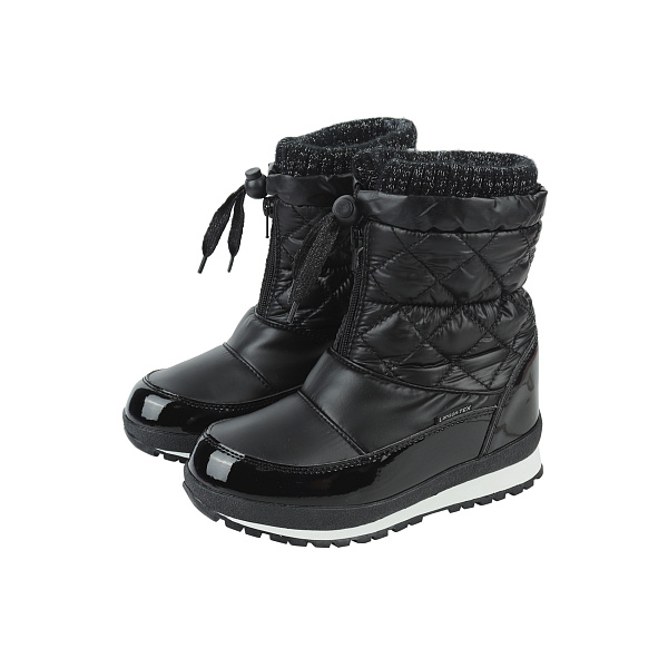 Избежать а промокших или замерзших ног помогут утепленные зимние сапожки-сноубутсы. Верх обуви изготовлен из комбинации текстиля и искусственной кожи. Верх голенища фиксируется прочным шнуром с фиксатором и застежкой-молнией, поэтому снег и холодный воздух не попадут внутрь. Подкладка и стелька изготовлены из шерсти, поэтому ногам ребенка будет тепло и сухо в снежное время. Стельки утепленные, они обеспечивают стопе мягкость и комфорт. Утолщенная рельефная подошва изготовлена из термопластичной резины (ТПР), которая обладает высокой прочностью, гибкостью и стойкостью к холоду, а также препятствует скольжению.