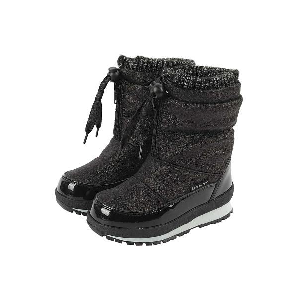 Утепленные сапоги-сноубутсы для девочки стильно смотрятся и надежно защищают ноги от зимнего холода. Верх из текстиля и искусственной кожи легко моется и обладает большой износостойкостью. Подкладка и стелька из материала с содержанием натуральной шерсти добавляют комфорта в носке. Толстая подошва изготовлена из упругой и устойчивой к внешним воздействиям термопластичной резины (ТПР). Благодаря наличию протектора подошва имеет надежное сцепление с асфальтом и другими поверхностями. Сапоги застегиваются на молнию и дополнительно регулируются сверху кулиской со шнурком.